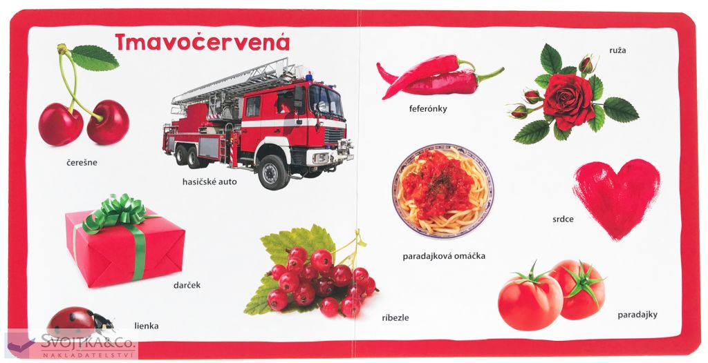 V tomto leporele s farebnými fotografiami určenom pre najmenšie deti sa predstavuje stovka rôznorodých hračiek, zvieratiek, potravín aj oblečenia. Obrázky sú na stránkach radené podľa farieb, takže je učenie sa farbám, objektom a zvieratám jednoduché a zábavné. Deti sa naučia pomenúvať a rozoznávať nielen klasické farby, ako je červená, modrá alebo zelená, ale aj ich tmavé a svetlé odtiene. Leporelo s menším formátom a pevnými stránkami je ideálne na vlastné „čítanie“, alebo na pohodlné prezeranie s mamičkou, oteckom, babičkou… no skrátka s kýmkoľvek, kto je po ruke.