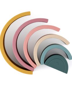 Silikónová skladacia hračka RAINBOW sa skladá zo šiestich farebných oblúkov, ktoré po umiestnení jeden na druhý vytvoria krásnu dúhu. Dúha je čarovnou bránou do sveta tvarov, farieb a poznávania. Skladanie oblúkov, ich otáčanie alebo ukladanie jedného oblúka na druhý je výborným cvičením pre malé rúčky. Dieťa si precvičuje presnosť pohybov a koordináciu. Skladačka vzbudzuje záujem dieťaťa, príjemným a pútavým spôsobom sústreďuje jeho pozornosť a učí ho tvorivému mysleniu. Usporiadanie neukladá konkrétne pravidlá, čím sa podporuje kreativita. Dieťa sa pritom skvele baví, môže vytvárať vlastné verzie skladačky, rozvíjať si konštrukčné zručnosti a precvičovať svoju priestorovú predstavivosť.