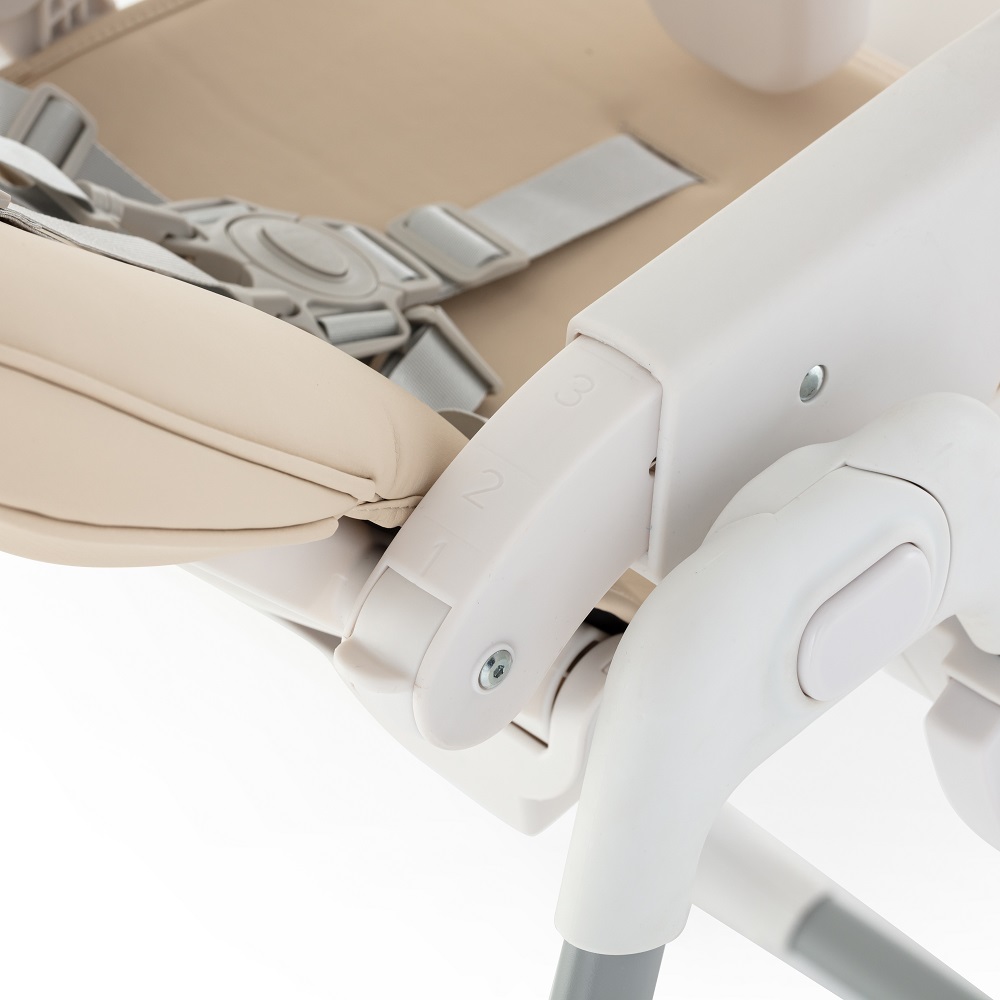Starostlivosť o životné prostredie, ktorú sme pri tvorbe tejto stoličky zohľadnili, nezatienila najdôležitejšie aspekty výrobku – bol totiž navrhnutý tak, aby čo najbezpečnejšie zlepšil každodenný život dieťatka aj rodičov. Stolička má všetky funkcie, ktoré uľahčujú každodenné kŕmenie: je možné ju ľahko zložiť a vyčistiť, má 5-bodové bezpečnostné pásy, nastaviteľnú opierku chrbta, nastaviteľnú opierku nôh, nastaviteľnú výšku, dve polohy pre podnos s hornou časťou, ktorú možno umývať v umývačke riadu. Stabilná konštrukcia stoličky zaistí bezpečnosť vášho dieťaťa bez ohľadu na to, aké je aktívne alebo pohyblivé. Vysokokvalitné vyhotovenie, premyslená konštrukcia, moderný a originálny dizajn a kompaktné skladanie sú nadčasové vlastnosti, ktoré zabezpečia pohodlie pre vaše dieťa od okamihu, keď sa naučí sedieť.