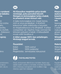 Bezpečné pohodlné prostredie pre bábätko, pre pocit ako v mamičkinom brušku. Udržuje bábätko v teple a v bezpečí a poskytuje mu pokojný spánok. Klasická šnurovacia zavinovačka je vyrobená z kvalitnej jemnej bavlny. Pevná vyberateľná vložka z kokosového vlákna stabilizuje jeho polohu a zabraňuje vychýleniu hlavičky. Rodičia, starí rodičia, či dospelí na návšteve sa tiež môžu cítiť istejšie pri manipulácii s malým telíčkom.