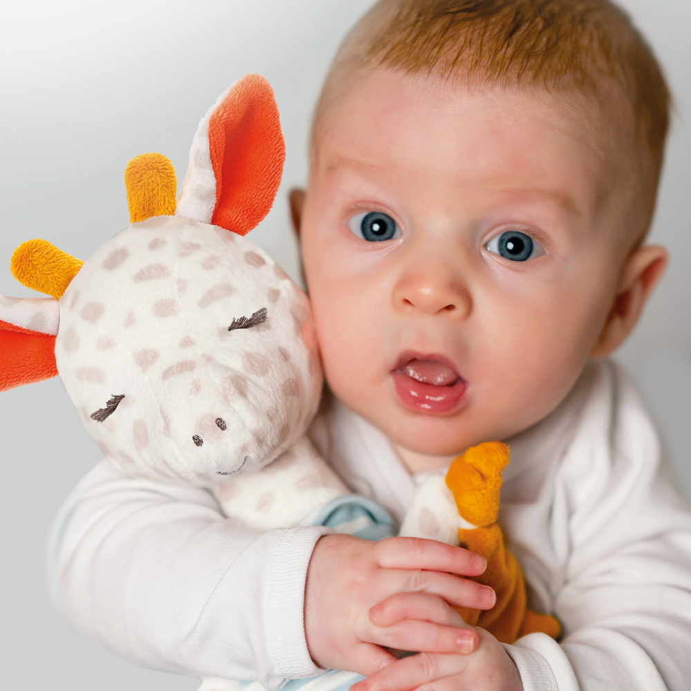 – Plyšová žirafa na maznanie a hranie
