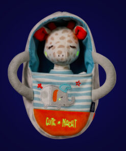 pokojného spánku – to je plyšová žirafa s plyšovou postieľkou s úchytmi. Vďaka