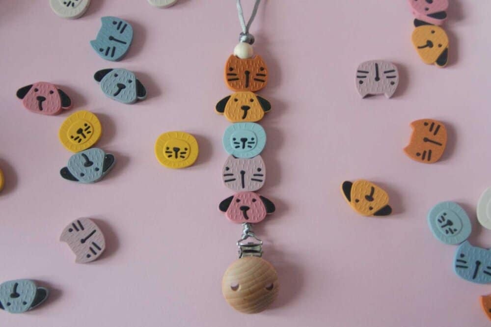 Klipy sú vyrobené z nemeckého bukového dreva, pričom sú veľmi odolné. Samotné silikónové korálky sú vyrobené z veľmi čistého potravinárského silikónu a sú nenáročné na údržbu a čistenie.