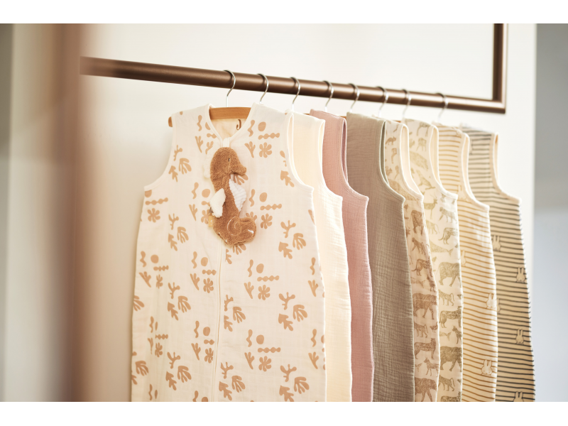 Ľahký spací vak z jemnej 100% bavlny má zips na prednej strane pre ľahké vloženie dieťaťa do spacieho vaku aj prebaľovanie počas spania.
