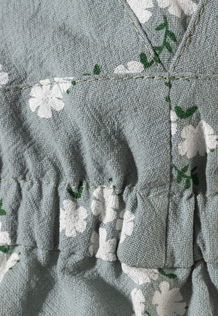 Ľahká bavlnená tkanina sa vyznačuje jemnou štruktúrou plátna. Jemné kvetinky sú v dievčenskej móde vždy trendy a samozrejme sa perfektne kombinujú s farebným a vzorovaným detským oblečením.
