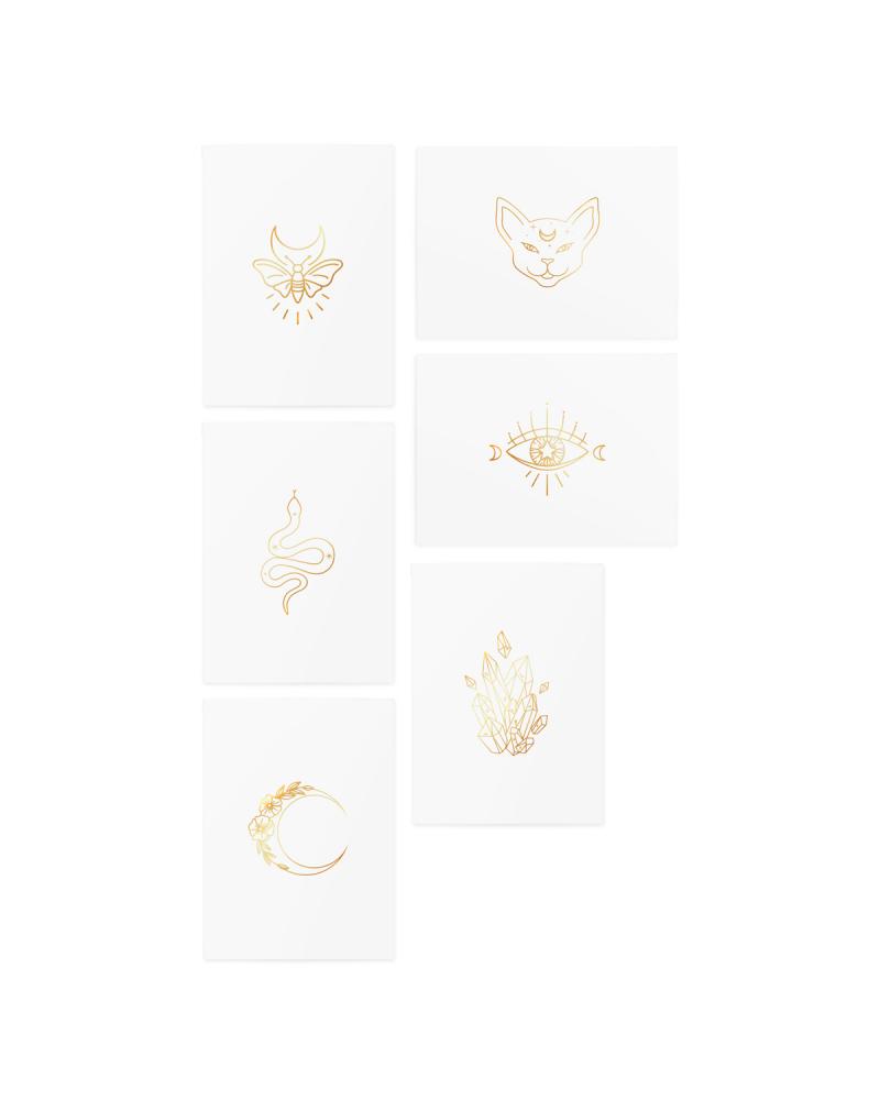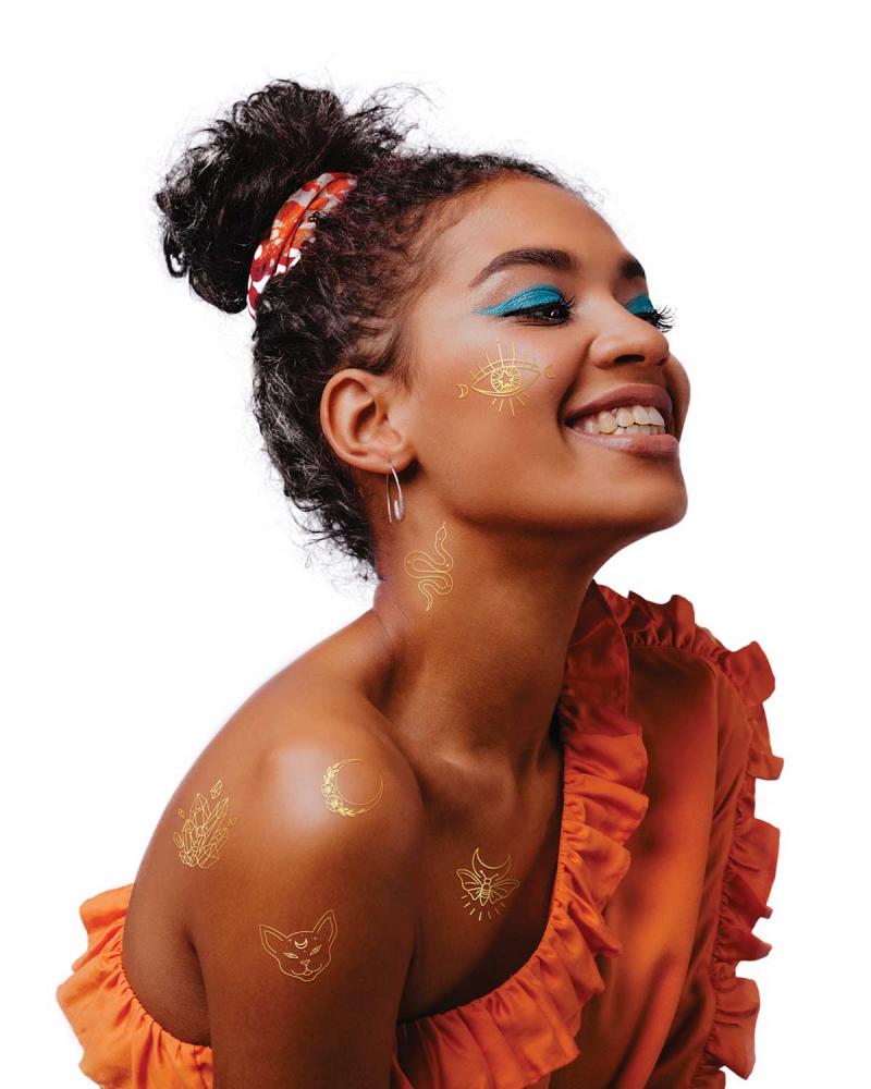 Verte či nie, tieto talizmany vás chránia pred urieknutím pohľadom. Dočasné tetovania Sparkling Gold Magic sú vyrobené pre zlepšenie nálady každej čarodejnice.