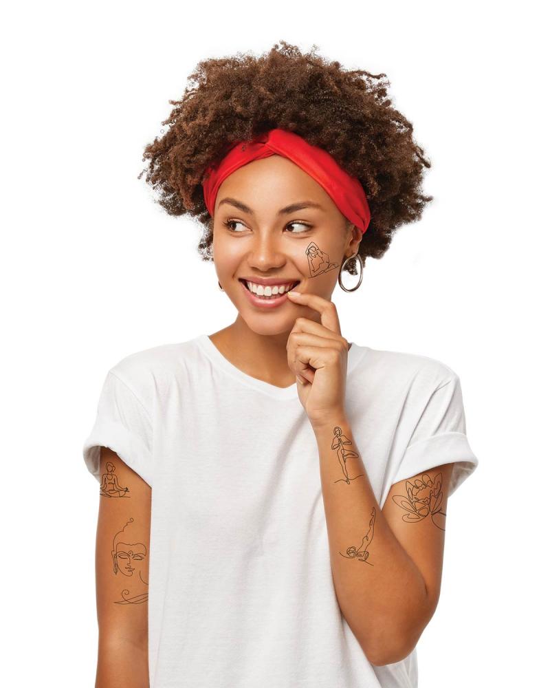 Nájdite svoj vnútorný pokoj a podeľte sa oň so svetom pomocou našej sady dočasných tetovaní s témou jógy.Nezabudnite sa o jedno alebo dve tetovania podeliť so svojou spriaznenou dušou! Sada obsahuje 6 samostatných tetovaní a špongiu pre jednoduchú aplikáciu.