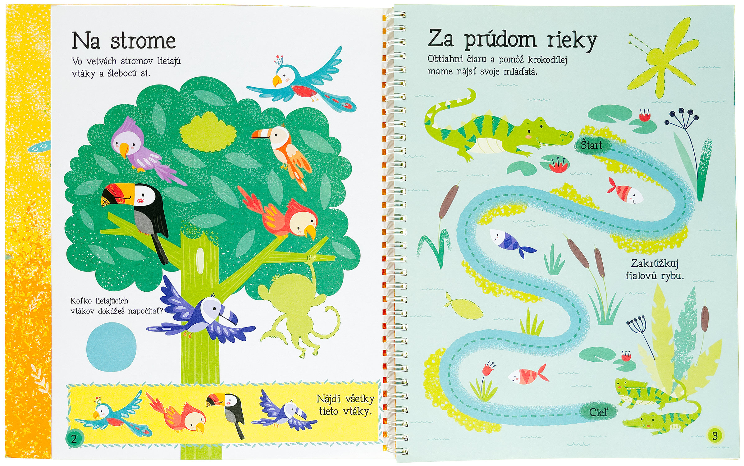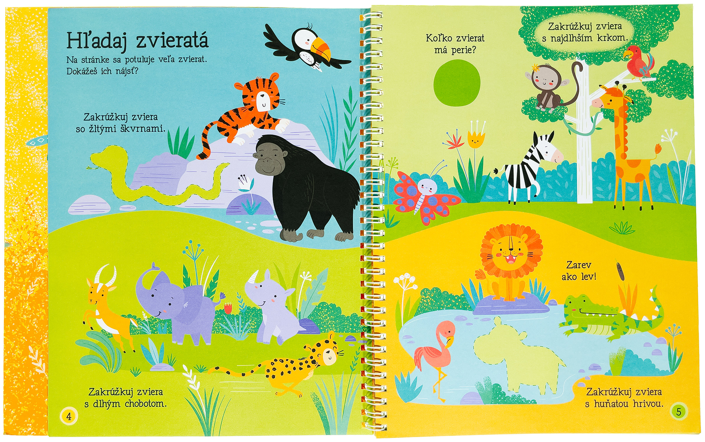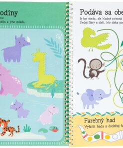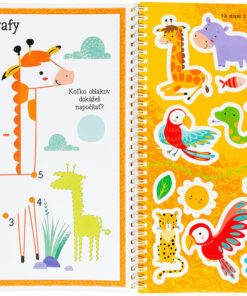 Uži si veľa zábavy s knihou aktivít. Precvič si nalepovanie, obťahovanie, spájanie, hľadanie rozdielov či počítanie. Na stránkach uvidíš obrysy obrázkov s prerušovanými čiarami, na ktoré budeš lepiť zodpovedajúce samolepky. Všetky ostatné samolepky môžeš nalepiť podľa vlastnej predstavivosti, kamkoľvek budeš chcieť. V knihe nájdeš aj zábavnú rozkladaciu scenériu na vyfarbenie a dolepenie úžasných samolepiek so zvieratami a vytláčaciu tigriu masku, s haďou skladačkou a so zvieracím kvartetom.