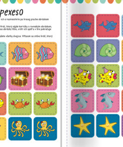 Ponor sa pod vodu medzi roztopašné žraloky! V tejto knihe plnej výziev na teba čaká množstvo aktivít a hier. Spájaj rovnaké zvieratá, hľadaj rozdiely, precvič si písanie a počítanie alebo pomôž žralokovi nájsť cestu ku kamarátovi. Nalepuj samolepky, vyfarbuj obrázky a vymýšľaj! Táto kniha s roztomilými samolepkami a vytláčacím podmorským pexesom ťa bude baviť!