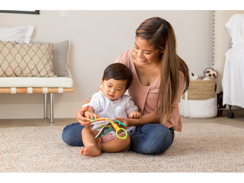 Textilná kniha s výraznými obrázkami zvieratiek vo vysoko kontrastných farbách pomáha rozvíjať zrak dieťaťa. Ponúka dieťaťu rôznorodé textúry pre skúmanie vrátane hryzátka, ktoré pomôže dieťaťu pri prerezávaní prvých zúbkov.