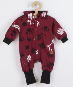 Dojčenský bavlnený overal s kapucňou a uškami New Baby labka tmavo ružový – 80 (9-12m)