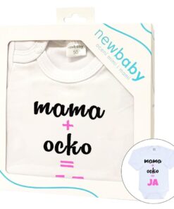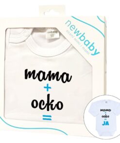 Body s potlačou New Baby mama plus ocko rovná sa JA – darčekové balenie – 86 (12-18m)