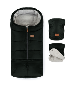 PETITE&MARS Set zimný fusak Jibot 3v1 + rukavice na kočík Jasie Ink Black